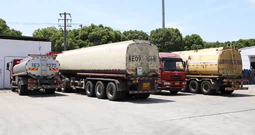 備有大型專用運輸罐車及危險品運輸車,擁有一次性運輸上百噸的能力,確??旖菁皶r的供應所需的產品。